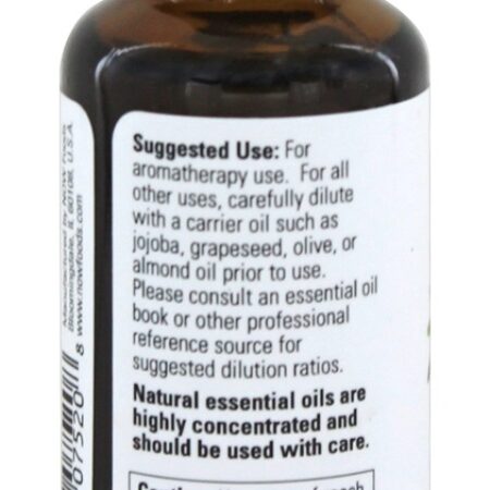 Todos os óleos essenciais 100% puros são rotulados assim. A NOW também vende misturas de óleos claramente rotulados que são formulados com óleos essenciais ou extratos absolutos e outro óleo como base, geralmente óleo puro de grainhas de uva. Óleos Essenciais Naturais, pela sua própria natureza, variam ligeiramente de estação para estação. O NOW permite que a natureza siga seu curso e não adiciona compostos isolados ao óleo para tentar padronizar as variações naturais de um determinado óleo. AGORA leva em consideração as propriedades organolépticas (visão, olfato e paladar) e químicas ao selecionar e testar os óleos essenciais da NOW.