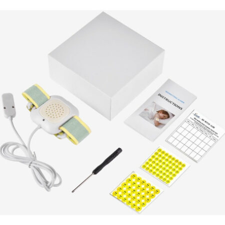 Alarme de enurese com sensor sensível e manguito elástico macio, ideal para uso no treinamento de toalete para ajudar com problemas de enurese.
