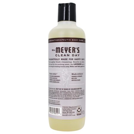 Mrs. Meyer’s Limpar Dia Corpo Lavar Lavanda é um suave, completo, limpeza, hidratante alto qualidade fórmula. Água de grau cosmético usada para uma experiência de produto premium. Feito com matérias-primas renováveis a partir de recursos derivados de plantas; produtos ingredientes são pelo menos 97 % naturalmente derivados. Composição biodegradável e fragrância feita com óleos essenciais e sintéticos seguros. Todas as garrafas podem ser recicladas e reutilizadas (HDPE # 2 ). Garrafas contém pelo menos 30 % de conteúdo reciclado pós-consumidor.