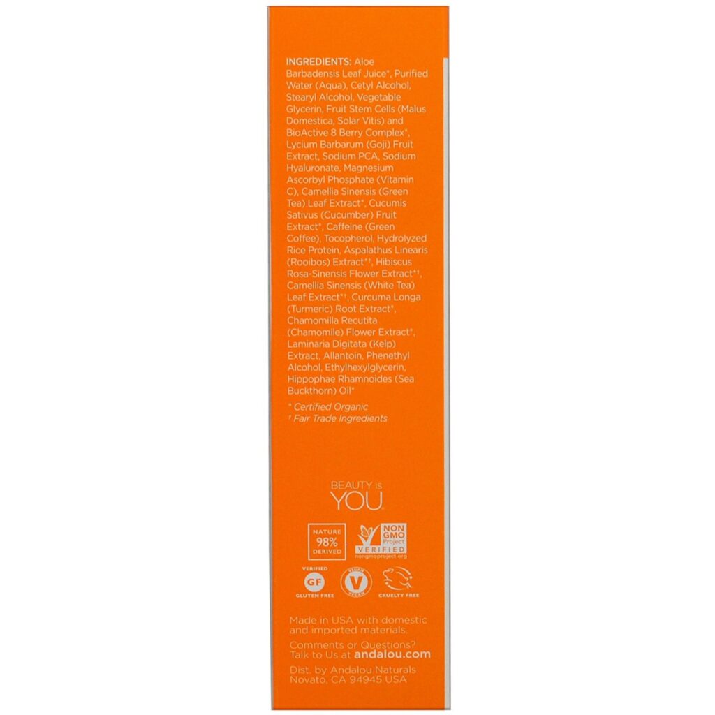 A Andalou Naturals é sinônimo de compromisso com a saúde e a beleza, utilizando apenas ingredientes de alta performance, livres de toxinas e crueldade animal. Cada gota deste sérum luminoso é um concentrado de inovação, projetado para entregar resultados palpáveis. Descubra o poder de um cuidado ocular especializado, que une o melhor da ciência e da natureza para você.