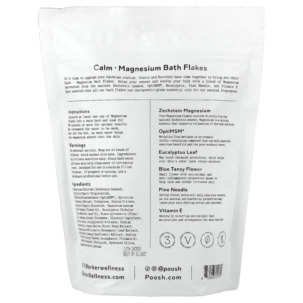 Barker Wellness Co Calm Flocos de Banho com Magnésio 750 g (265 oz) – Barker Wellness Co Banho e Cuidados Pessoais Banho Banhos de Imersão Minerais e Sais de Banho Suplementos Minerais Magnésio.