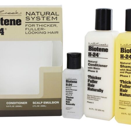 Mill Creek Botanicals – Biotene H-24 Natural Sistema para Grossa Mais completo Procura Cabelo – Tri-Pack (Shampoo, Condicionador e Emulsão)