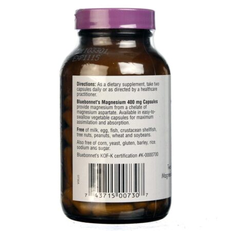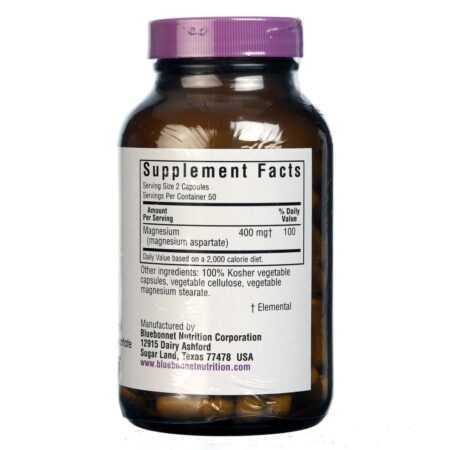 Cada cápsula vegetariana de Bluebonnet Nutrition contém 400 mg de magnésio.