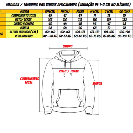 AS BLUSAS SÃO MODELO UNISSEX, SERVEM TANTO PARA HOMENS QUANTO PARA MULHERES, A UNICA ORIENTAÇÃO QUE DAMOS É QUE SE FOR ESCOLHER FEMININO, ANALISAR A TABELA DE MEDIDAS ABAIXO E ESCOLHER OS MENORES TAMANHO DE ACORDO COM SUAS MEDIDAS OU ALGUMA BLUSA DE COMPARAÇÃO QUE TENHA.