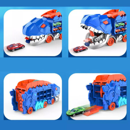 Função de alimentação e armazenamento: O dinossauro pode engolir o minicarro pela boca; depois de ser engolido, o carro pode deslizar para fora da porta bucal do dinossauro. O corpo do dinossauro pode armazenar os carrinhos de brinquedo, o que não só facilita a arrumação das crianças depois de brincar.