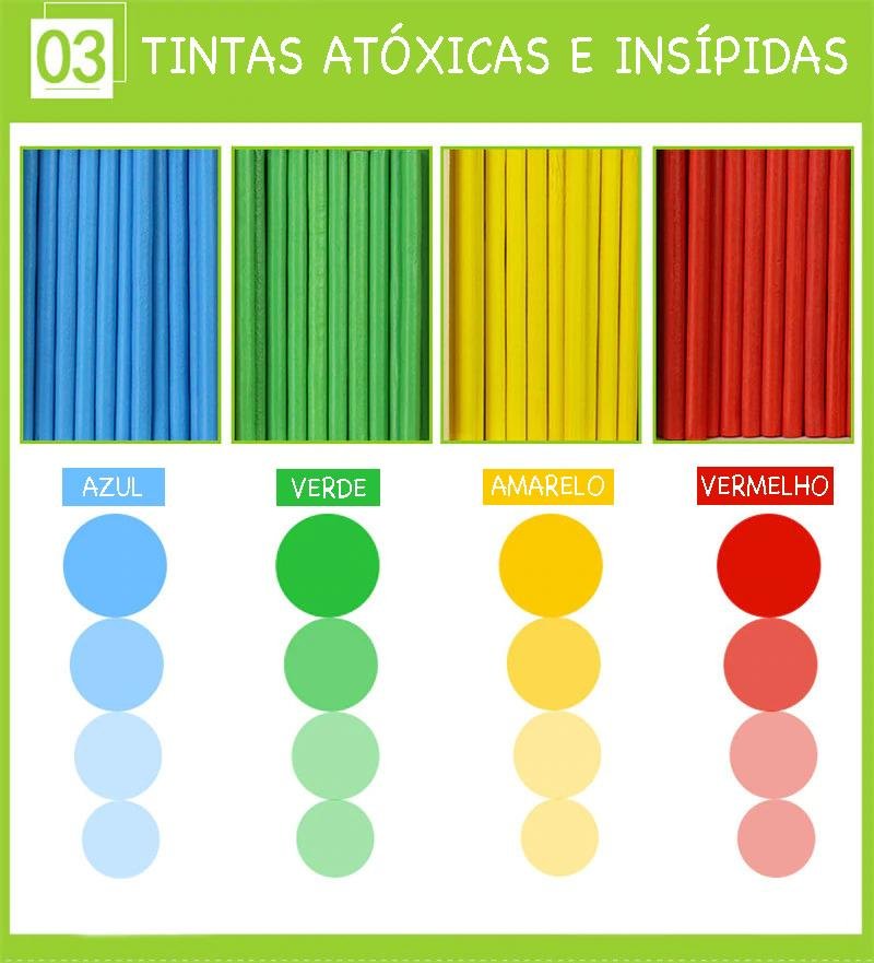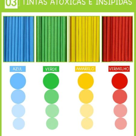 Colorido com tintas atóxicas, insípidas e de textura super suave;