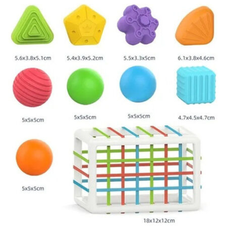 Storage cubes and 9 sensory shape blocks |
