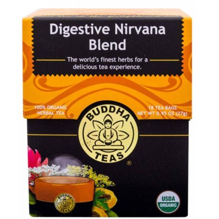 A Mistura Nirvana Digestiva da Buddha Teas é um blend de chás orgânicos formulado especificamente para promover a saúde e o bem-estar do sistema digestivo, auxiliando no alívio de desconfortos como inchaço e gases.