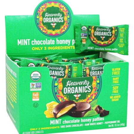 Heavenly Organics – Caixa de rissóis de mel de chocolate menta – 40 Contagem (. 39 oz / 11 g cada)