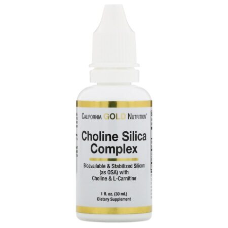 O Complexo de Colina e Dióxido de Silício da California Gold Nutrition contém uma forma biodisponível e estabilizada de silício chamada ácido ortossilícico (OSA) combinado com colina e L-carnitina.