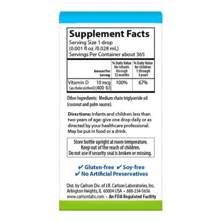 Carlson Labs Baby Super Daily Vitamina D3 400 IU: Essencial para o Desenvolvimento Saudável do Seu Bebê
