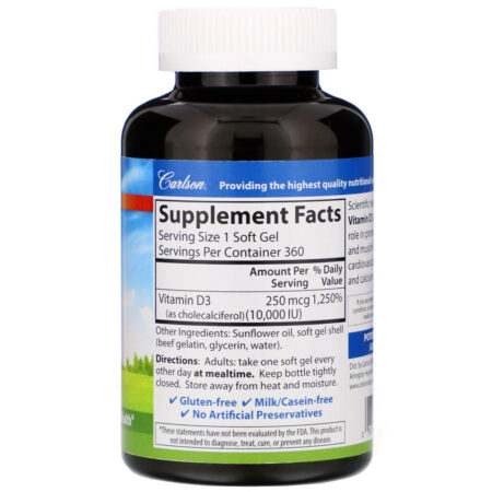 Onde comprar Carlson Labs, Vitamin D3, 10,000 IU (250 mcg), 360 Soft Gels – Garanta o seu hoje e aproveite a oferta especial! Frete grátis e entrega rápida para todo o Brasil.