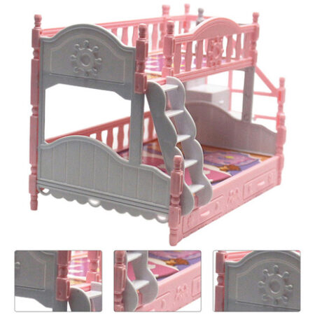 formado por características realistas e requintadas, que tornam esta cama em miniatura fácil de promover o desenvolvimento da história da casa de bonecas e pode adicionar a diversidade ao cenário da casa de bonecas.