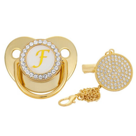 Chupeta Ouro Bling com a Letra Inicial do Seu Bebê .