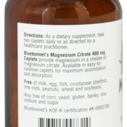 Citrato de Magnésio da Bluebonnet Nutriton 400 mg. Cápsulas fornecem magnésio em um quelato de citrato de magnésio. O citrato de magnésio Bluebonnet Nutrition está disponível em cápsulas fáceis de engolir para máxima assimilação e absorção.