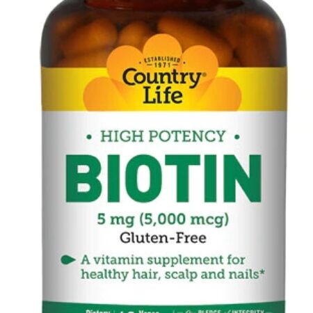 Descubra o poder da Biotina Country Life 5mg, uma fórmula de alta potência com 5000mcg por dose, projetada para nutrir e fortalecer seus cabelos, pele e unhas de dentro para fora. Com 60 cápsulas vegetarianas e sem glúten, este suplemento é a escolha ideal para quem busca uma beleza radiante e duradoura, aliada à saúde e bem-estar geral.