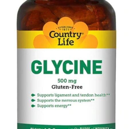 Descubra o poder da Country Life Glicina 500mg com Vitamina B6, um suplemento de glicina formulado para apoiar seu bem-estar geral. Perfeito para quem busca os benefícios da glicina como um sono reparador, melhor saúde mental e um sistema nervoso equilibrado, este produto de 100 comprimidos da Country Life Glicina é a escolha ideal para integrar um aminoácido crucial à sua rotina diária.