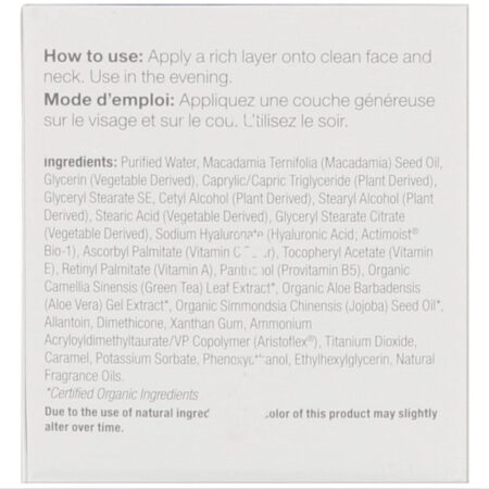 Aplique uma camada abundante sobre o rosto e o pescoço limpos. Use à noite.