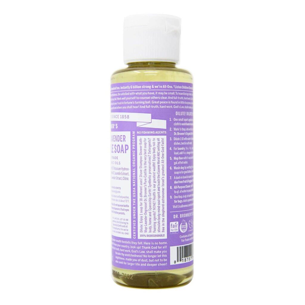 Esteja pronto para uma experiência de limpeza completa, que vai do seu corpo à sua casa, sempre com a garantia de um produto original e de alta performance. O Dr. Bronner’s Lavanda Pura 118ml é mais que um sabão, é um estilo de vida.