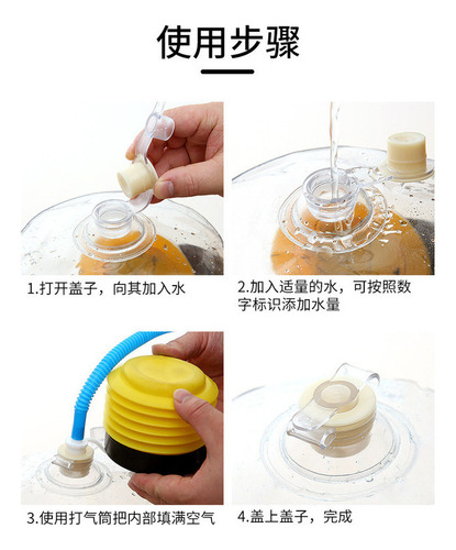 bolsa transparente e a balança de nível de água limpa permitem que você saiba a quantidade de água cheia.