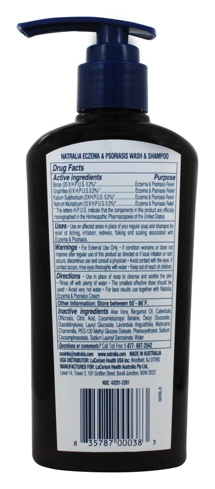 Use nas áreas afetadas em vez de sabão e xampu regulares para aliviar a coceira, irritação, vermelhidão, descamação e descamação associadas ao eczema e à psoríase. Evite usar água muito quente. Para melhores resultados, siga com Natralia Eczema e creme de psoríase.