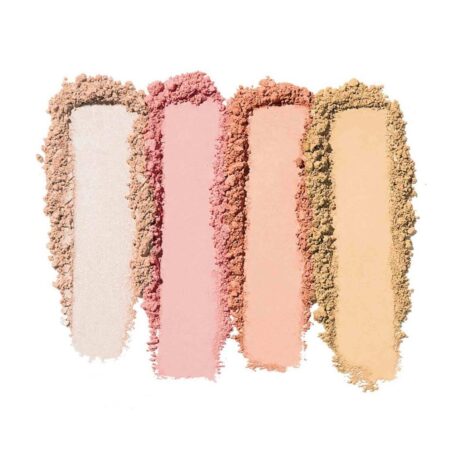 A palette geralmente contém tons complementares para contorno, blush e iluminação. O tom de contorno é ideal para criar sombras e definir o rosto, o blush adiciona cor e vitalidade às maçãs do rosto, e o iluminador confere um brilho radiante em pontos estratégicos.