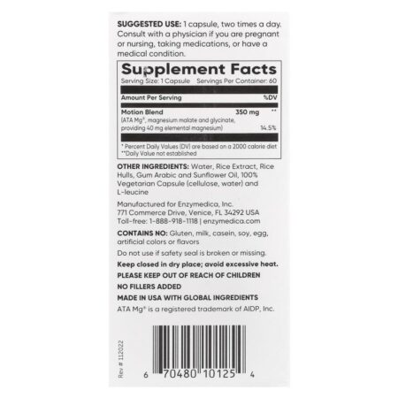 Enzymedica Magnésio Movimento 60 Cápsulas – Enzymedica Suplementos Minerais Magnésio.