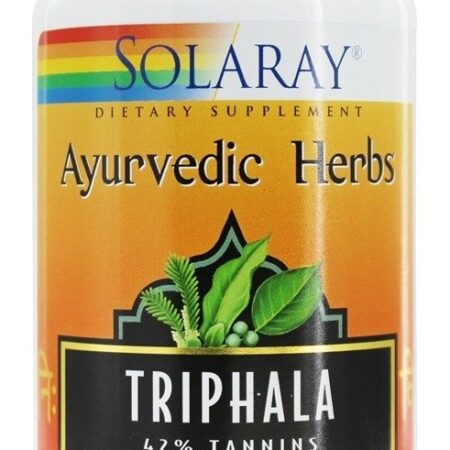 Triphala, a mistura herbácea mais usada em Ayurveda, foi valorizada pelos antigos hindus como um bom administrador da casa. Triphala contém partes iguais de três frutas: Terminalia chebula, Terminalia belerica, e Embelica officinali.O triphala fruto extrair em Solaray Ayurvedic Ervas Triphala é garantido para conter 45% taninos.