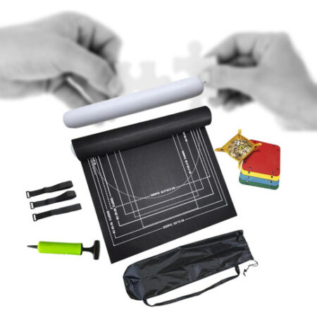 Este kit inclui tudo o que você precisa para tornar seus quebra-cabeças portáteis ou armazená-los. Inclui 1 tapete de feltro antiderrapante, 1 saco de arrumação, 3 bandas, 1 vareta insuflável, 1 bomba e 4 bandejas de separação.