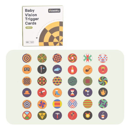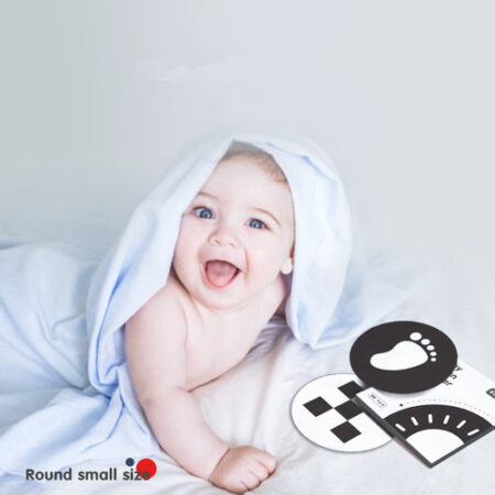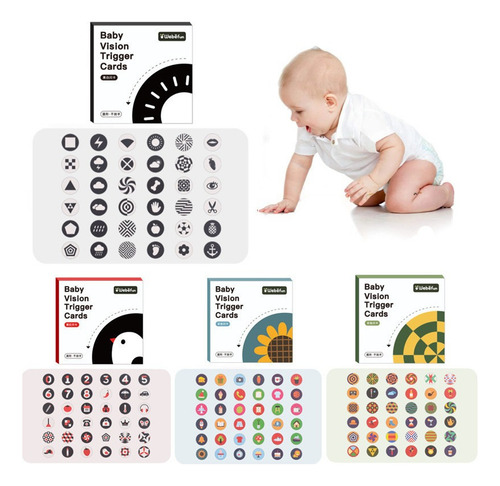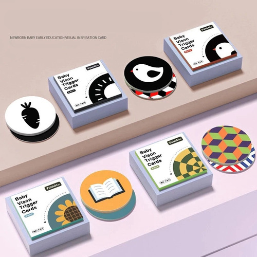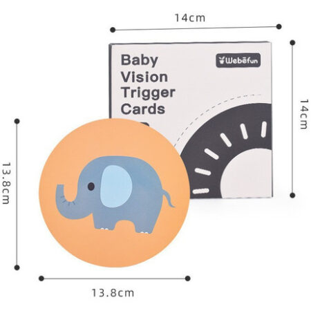 Os cartões de dupla face de grandes dimensões são feitos de papelão grosso e apresentam ilustrações contrastantes com base na visão do seu bebê.