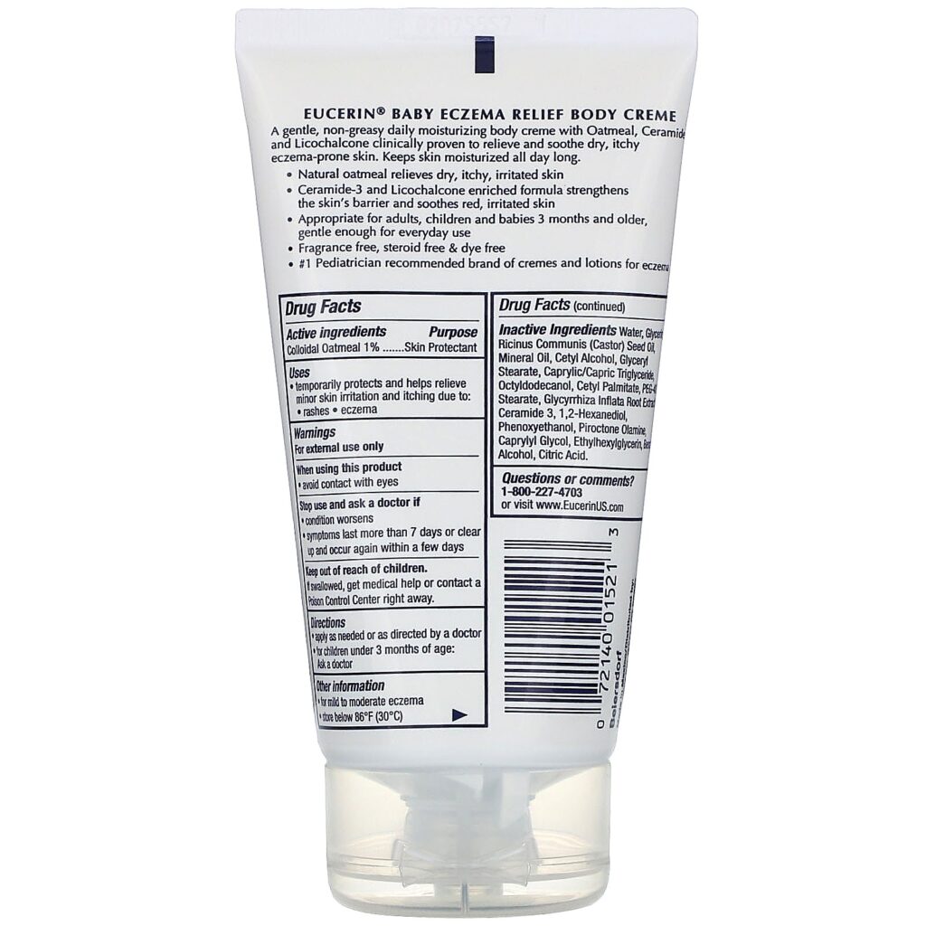 Unique formula with Oatmeal, Ceramide-3 and Licochalcone intensively moisturizes and helps relieve dry, irritated skin and itching due to eczema