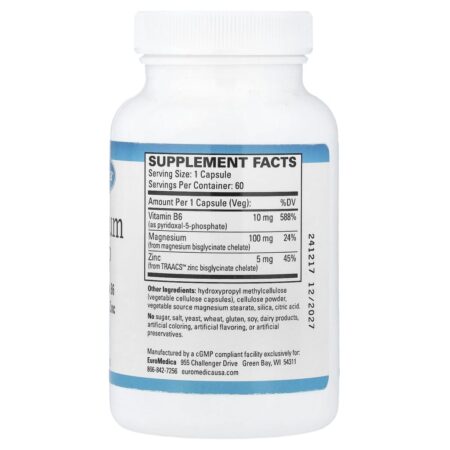 EuroMedica Magnésio + P5P 60 Cápsulas – EuroMedica Suplementos Minerais Magnésio Vitaminas Vitamina B Vitamina B6 (Piridoxina).