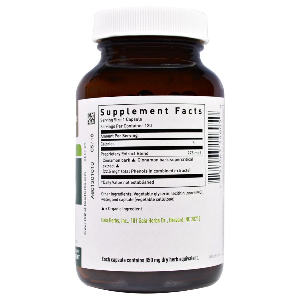 A Casca de Canela ajuda a promover um equilíbrio glicêmico suportando o metabolismo saudável da glicose sanguínea. Gaia Herbs usa a tecnologia de extrato duplo para fornecer o amplo espectro dos constituintes herbais: Solvente – extração supercrítica livre que rende compostos de plantas solúveis em gordura, e o extrato de água e álcool captura os compostos fenólicos solúveis em água.