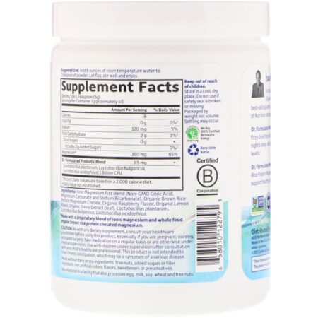 O Magnésio de Alimento Integral Dr. Formulated conta com quelato de magnésio de proteína de arroz castanho orgânico e probióticos vivos para dar suporte à digestão saudável e à constipação ocasional.