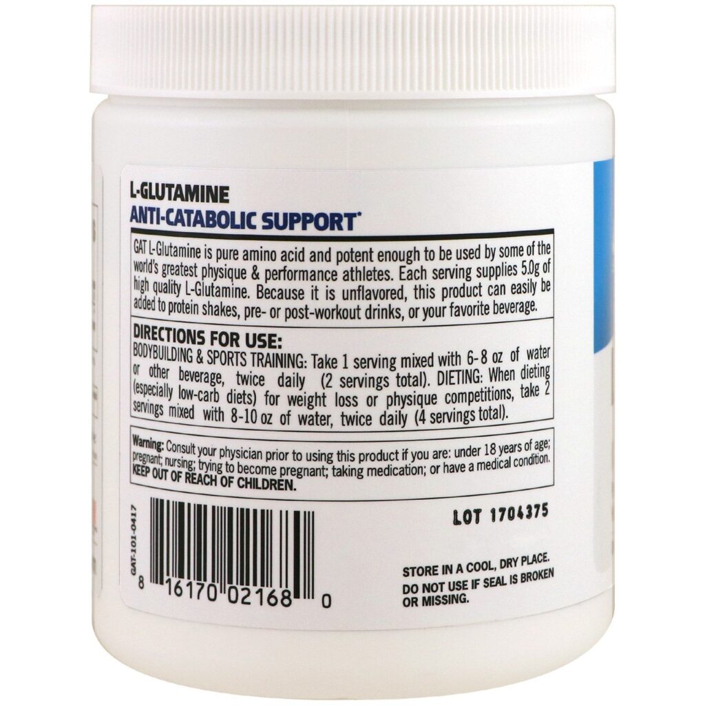 A L-Glutamina da GAT é produzida com aminoácidos puros e é potente o bastante para ser usada por alguns dos maiores atletas fisiculturistas e de desempenho. Cada porção fornece 5 g de L-glutamina de alta qualidade. Como este produto não tem sabor, ele pode ser facilmente misturado em shakes de proteína, bebidas pré ou pós-treino ou sua bebida favorita.