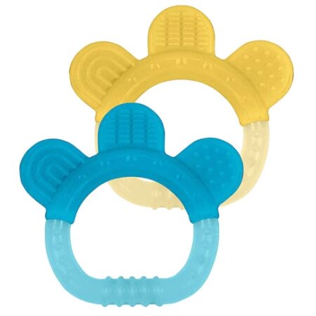 O mordedor é feito de 100% silicone de grau alimentício, garantindo que seja seguro para o bebê morder e mastigar.