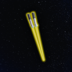 Existia um fã de guerra nas estrelas, ele era feliz pois tinha um poderoso par de hashis de sabre de luz, que chamava a atenção por aonde passava!