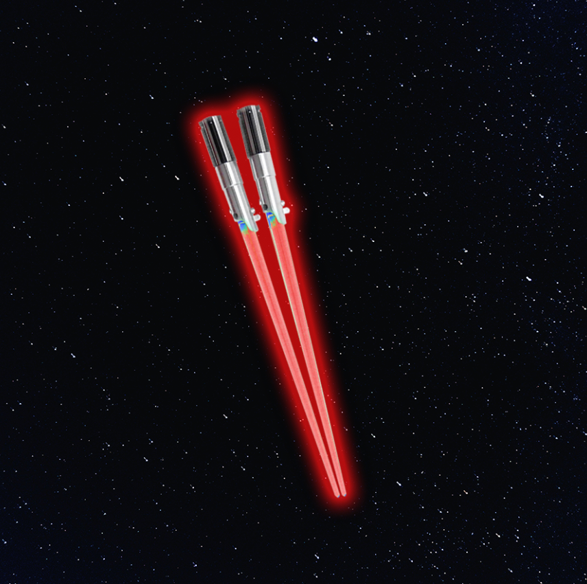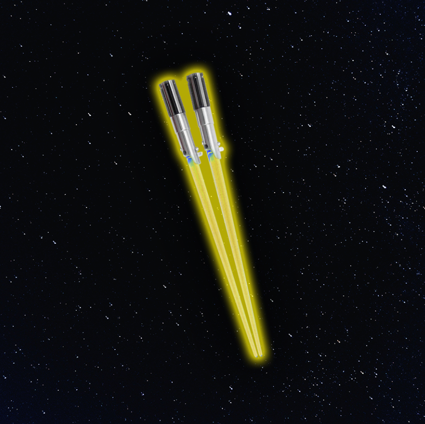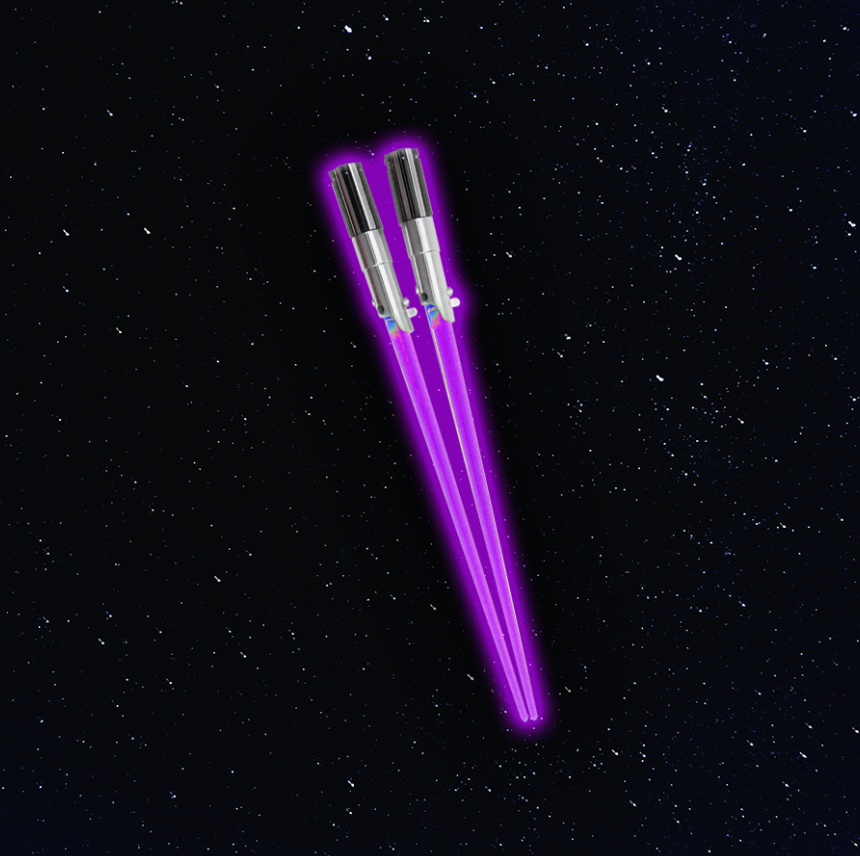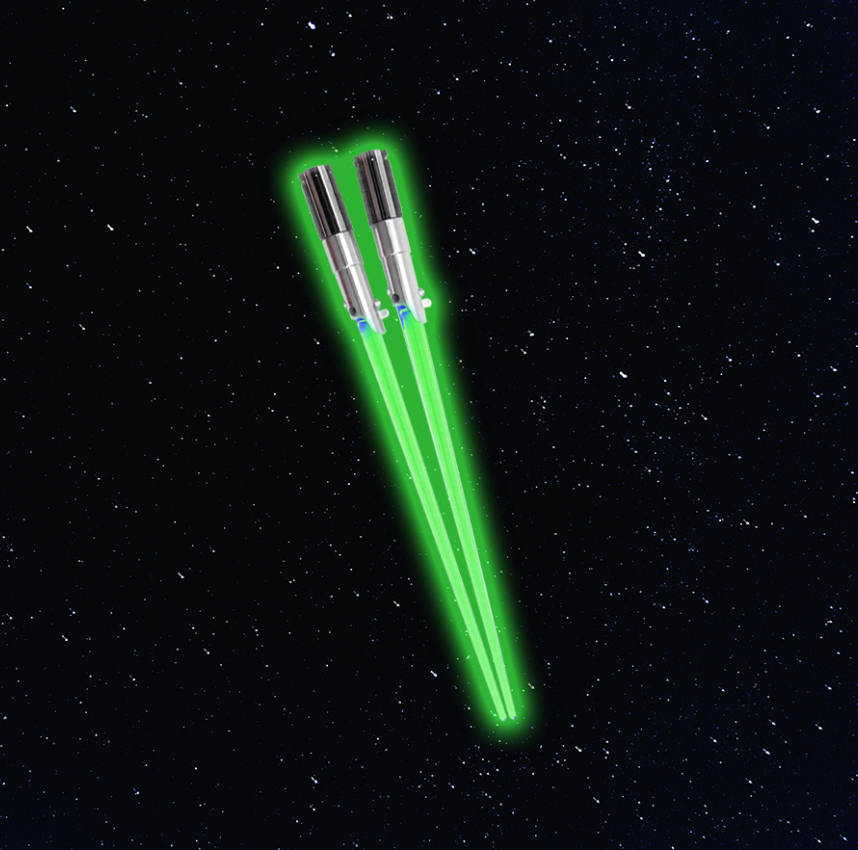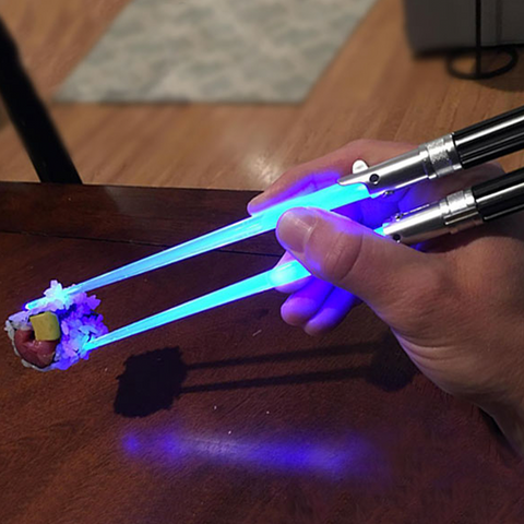 Com estes hashis luminosos toda refeição vira uma jornada épica. Coma massas, Suhi, Noodles como um verdadeiro Jedi.