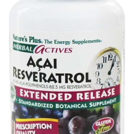 Apenas um Natures Plus Herbal Actives Açaí Resveratrol Extended Release tablet, uma vez por dia, oferece tudo isso: