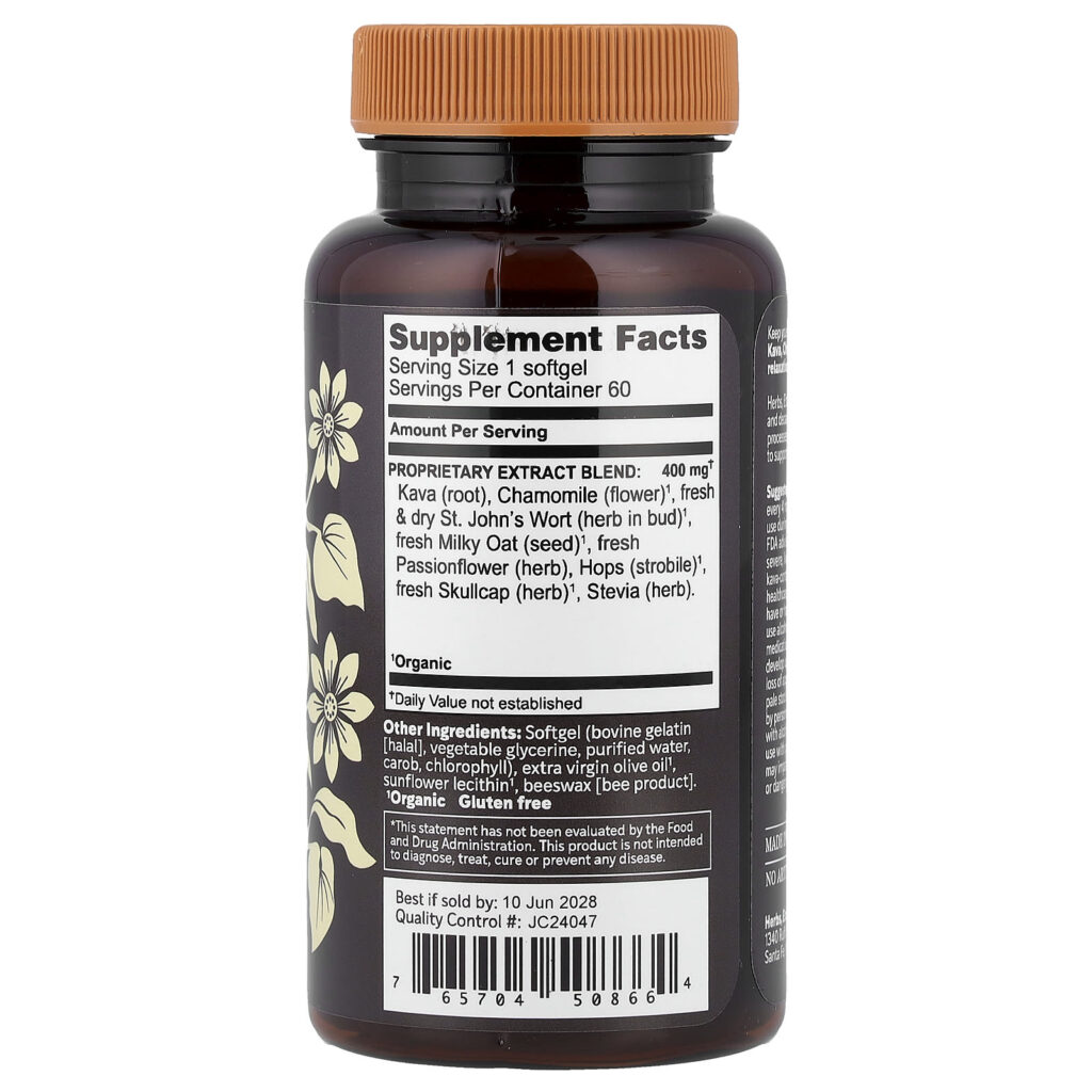 Herbs Etc. Kava Calm™ 60 Cápsulas Softgel – Herbs Etc. Suplementos Ervas Kava Fórmulas de Ervas.