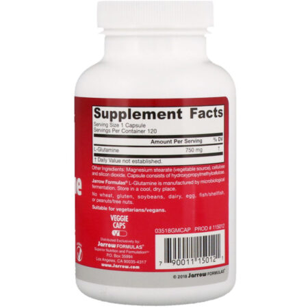 Jarrow Formulas L-Glutamine is manufactured by microbiological fermentation.