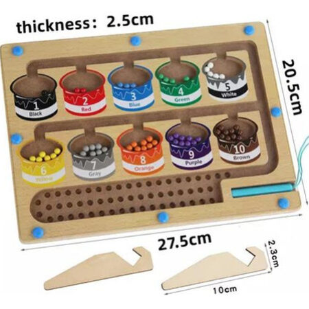 Brinquedo magnético de madeira: mesa de quebra-cabeça magnética para que as crianças se divirtam explorando cores e números, latas de tinta 10 em 1, cada lata de tinta representa um número e a cor correspondente ao número (55 no total).