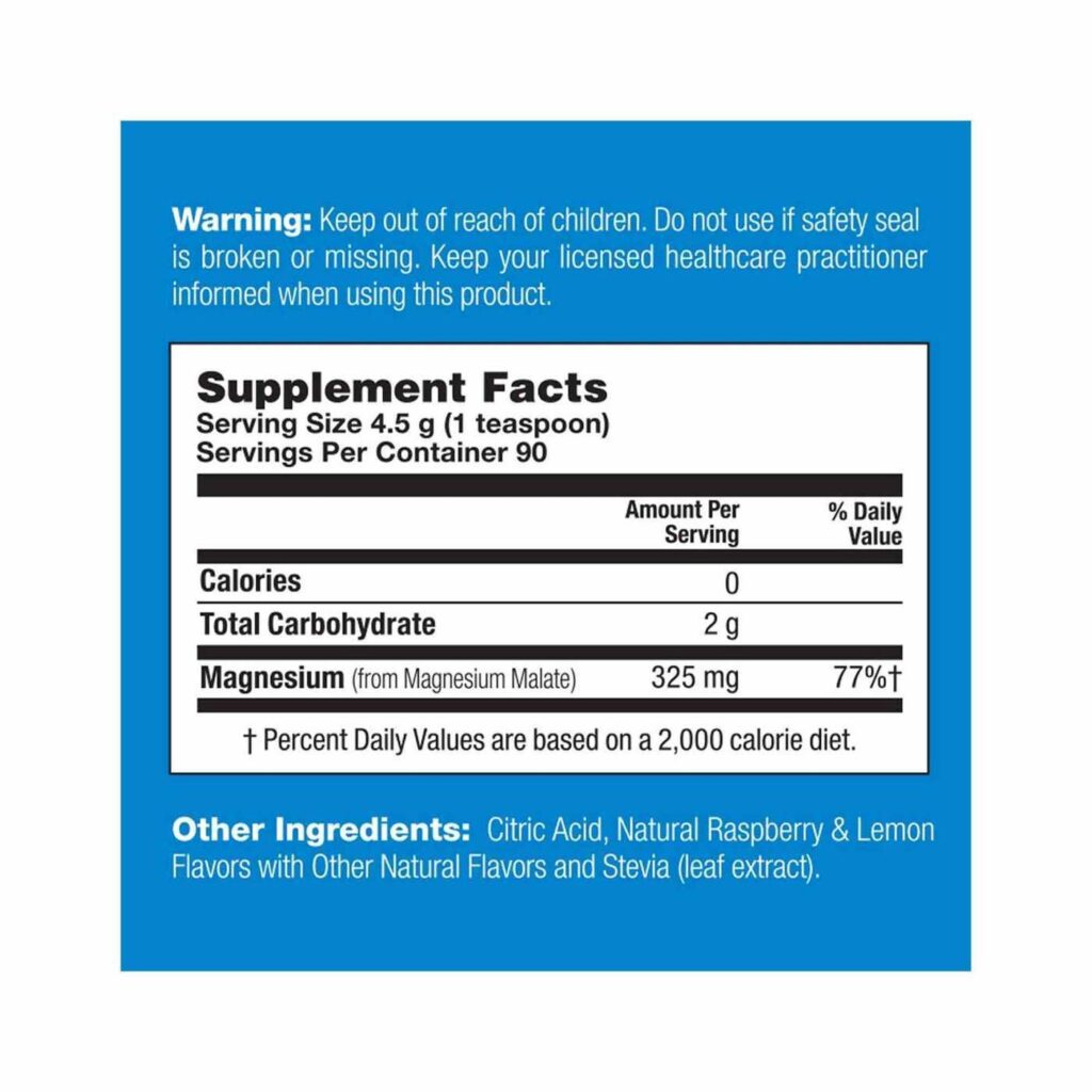 A quantidade exata de magnésio por dose está especificada no rótulo do produto. Recomendamos verificar a embalagem para informações precisas.