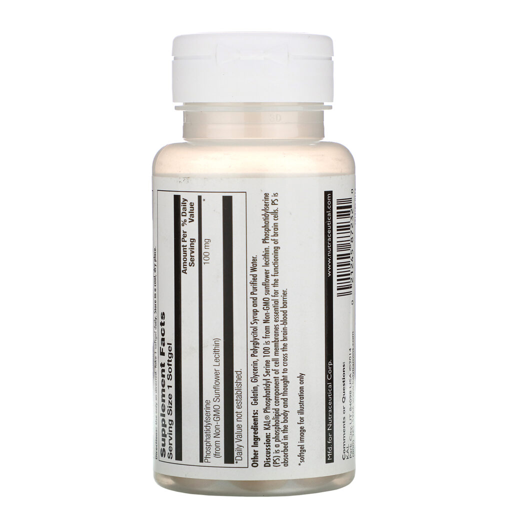 Discussion: KAL Phosphatidyl Serine 100 is from Non-GMO sunflower lecithin. Phosphatidylserine (PS) is a phospholipid component of cell membranes essential for the functioning of brain cells. PS is absorbed in the body and thought to cross the brain-blood barrier.