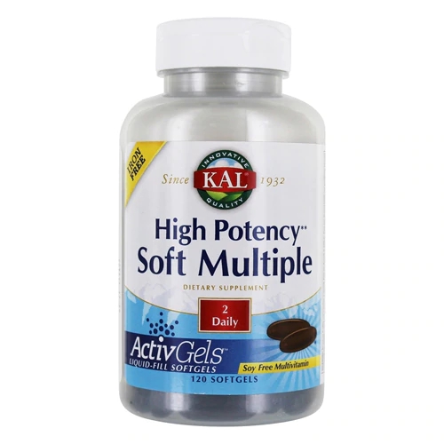 O KAL High Potency Soft Multiple é um suplemento multivitamínico de alta potência, contendo 120 softgels. Ele foi formulado para fornecer uma ampla gama de vitaminas e minerais essenciais que auxiliam na manutenção da saúde geral, energia, sistema imunológico e bem-estar.