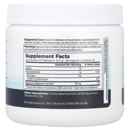 KAL Magnésio Calmante em Pó Cereja 256 g (9 oz) – KAL Suplementos Minerais Magnésio.