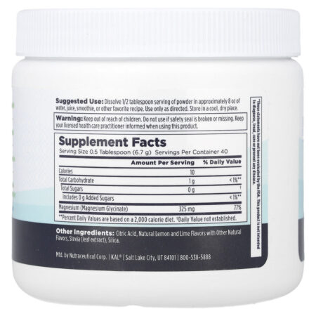KAL Magnésio Calmante em Pó Limão Siciliano 270 g (95 oz) – KAL Suplementos Minerais Magnésio.