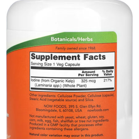 1. Suporte Principal: O Kelp 325mcg da Now Foods é um suplemento natural que fornece iodo, essencial para o equilíbrio corporal. Este produto é especialmente valorizado por aqueles que buscam manter um fornecimento adequado de iodo, proveniente de uma fonte natural.
