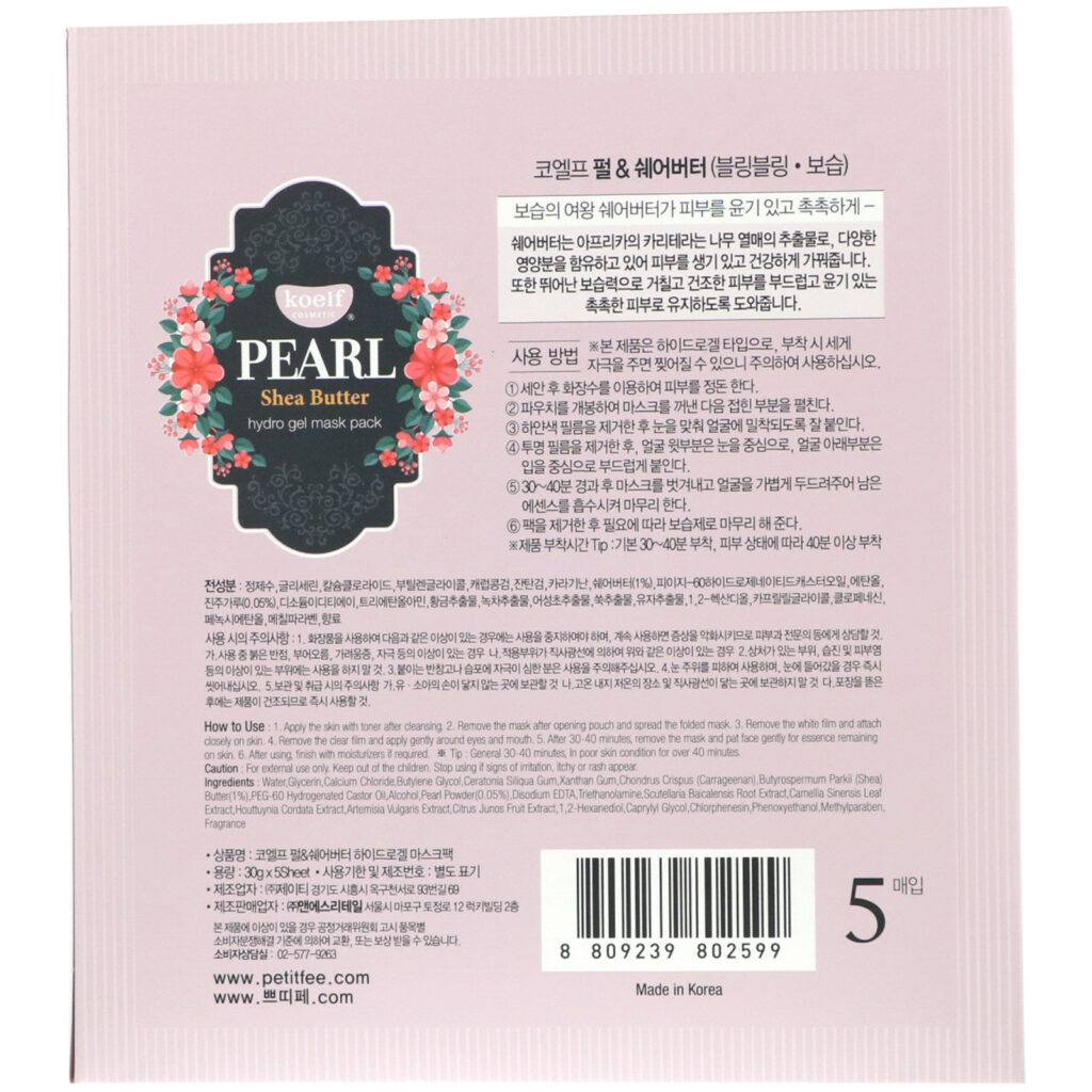 Onde comprar Koelf, Pearl Shea Butter, Hydro Gel Mask Pack, 5 Sheets, 30 g Each – Garanta o seu hoje e aproveite a oferta especial! Frete grátis e entrega rápida para todo o Brasil.