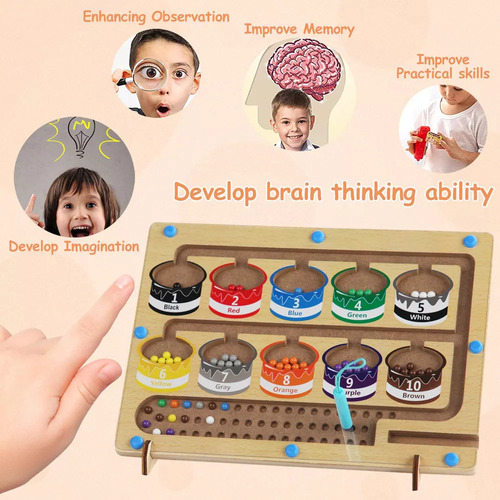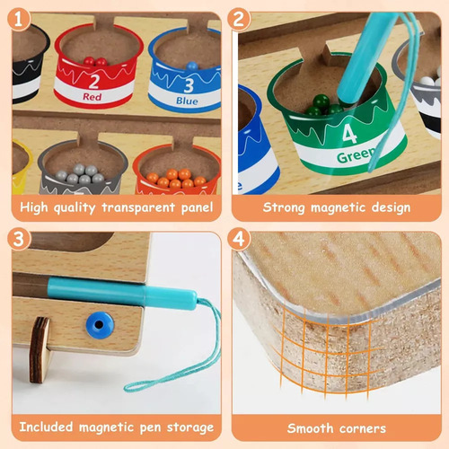 brinquedos magnéticos de madeira: mesa de quebra-cabeça magnética que permite que as crianças se divirtam explorando cores e números, latas de tinta 10 em 1, cada lata de pintura representa um número e uma cor correspondentes às contas (55 peças no total).